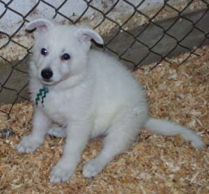 SUREFIRE SHEPHERDS surefireshepherds@earthlink.net Myah and Super puppies born 6-27-04. Four males and three females, all white. This litter is UKC registered. Puppies are show quality and will make excellent pets or agility/obedience prospects. All puppies are reserved. |