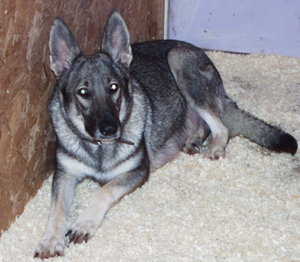 | Rachel is a silver sable with excellent black pigment. She carries the white gene from her sire, Romeo and will produce white if bred back to a German Shepherd who is white or also carries white. | |